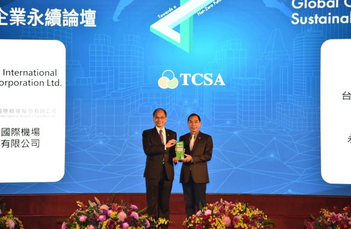 桃園國際機場秉持公司治理精神及對社會、環境永續發展重視,編撰發布企業報告書推動ESG經營,17日獲財團法人台灣永續能源研究基金會頒發2021年度TCSA「台灣永續企業績優獎」及「企業永續報告書運輸業類組-金獎」雙重榮耀。由立法院長游錫堃頒贈,桃機總經理但昭璧代表受獎。