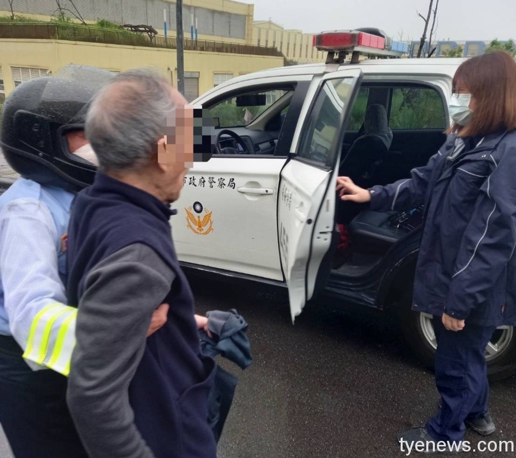 楊梅分局富岡派出所表示,副所長黃子宸、警員林芸萱27日7時許接獲民眾報案,指稱有名老翁在台鐵富岡基地逗留,經前往了解老翁(姓戴、92歲)早上6時許出門運動,但近日天氣狀況不佳迷失方向,自家中步行約3公里至台鐵富岡基地附近,因大雨滂沱致老翁全身淋濕,在警方詢問時,老翁不斷以客家話回應,無法了解其所說內容,幸好黃子宸長期於楊梅地區服務深諳客語,利用客語能力在交談中得知戴男住處及家屬聯繫方式,因戶外大雨天氣稍涼,考量戴男因淋雨有身體失溫及臉色蒼白情形,遂由該基地保全及員警協助攙扶戴男上車,返回所內清洗、更換衣物,提供熱茶給其暖身,並協助其將頭髮吹乾,警方一系列的行為,讓老人及家屬覺得非常暖心及感動,幫助老翁度過難忘的一天。