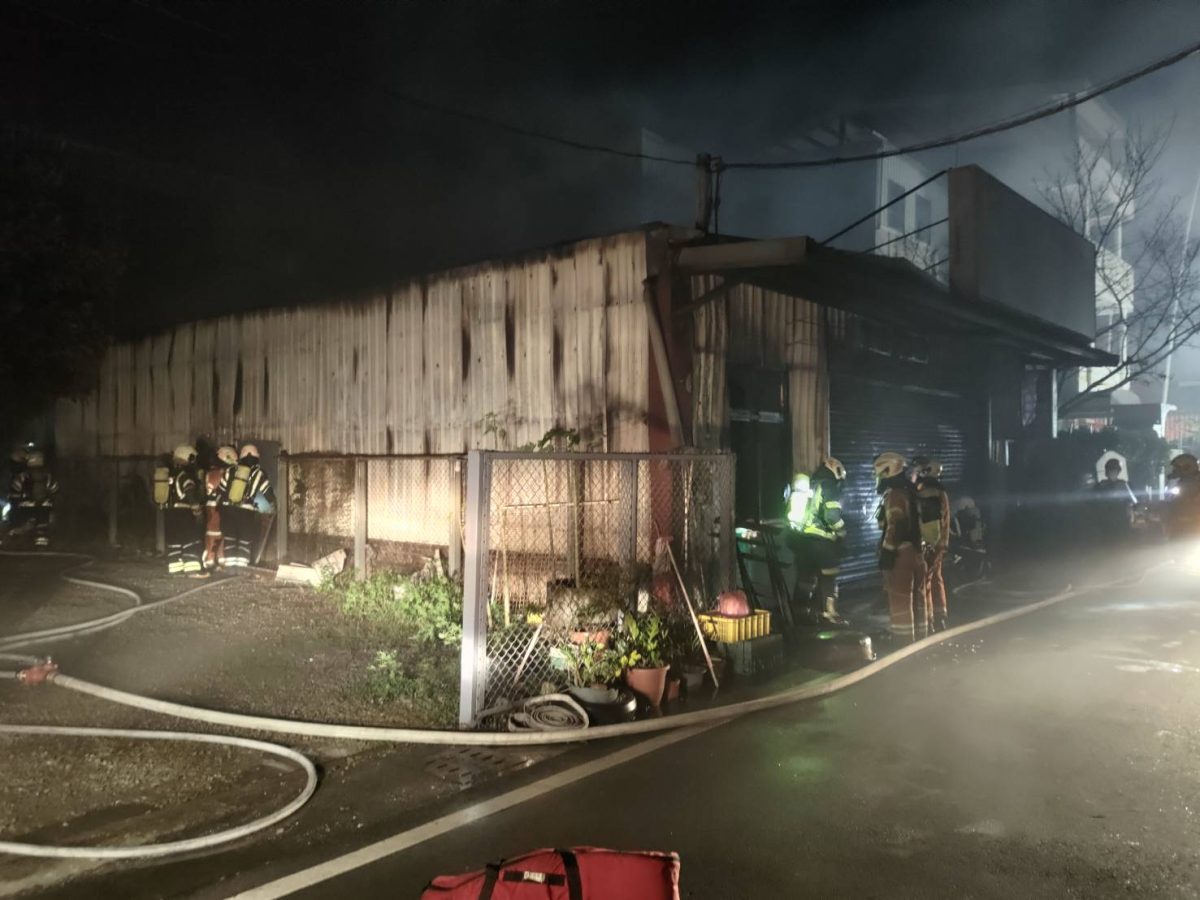 大溪某鐵皮屋汽修廠昨晚驚傳火警。圖:讀者提供