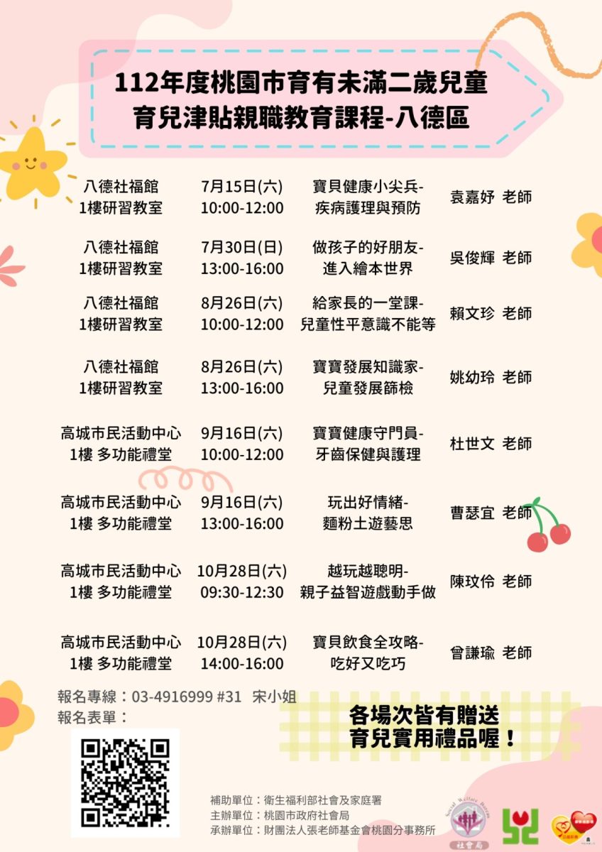 桃園市社會局主辦,財團法人「張老師」基金會桃園分事務所承辦的112年度桃園市未滿二歲兒童育兒津貼親職教育課程,熱烈開課中。