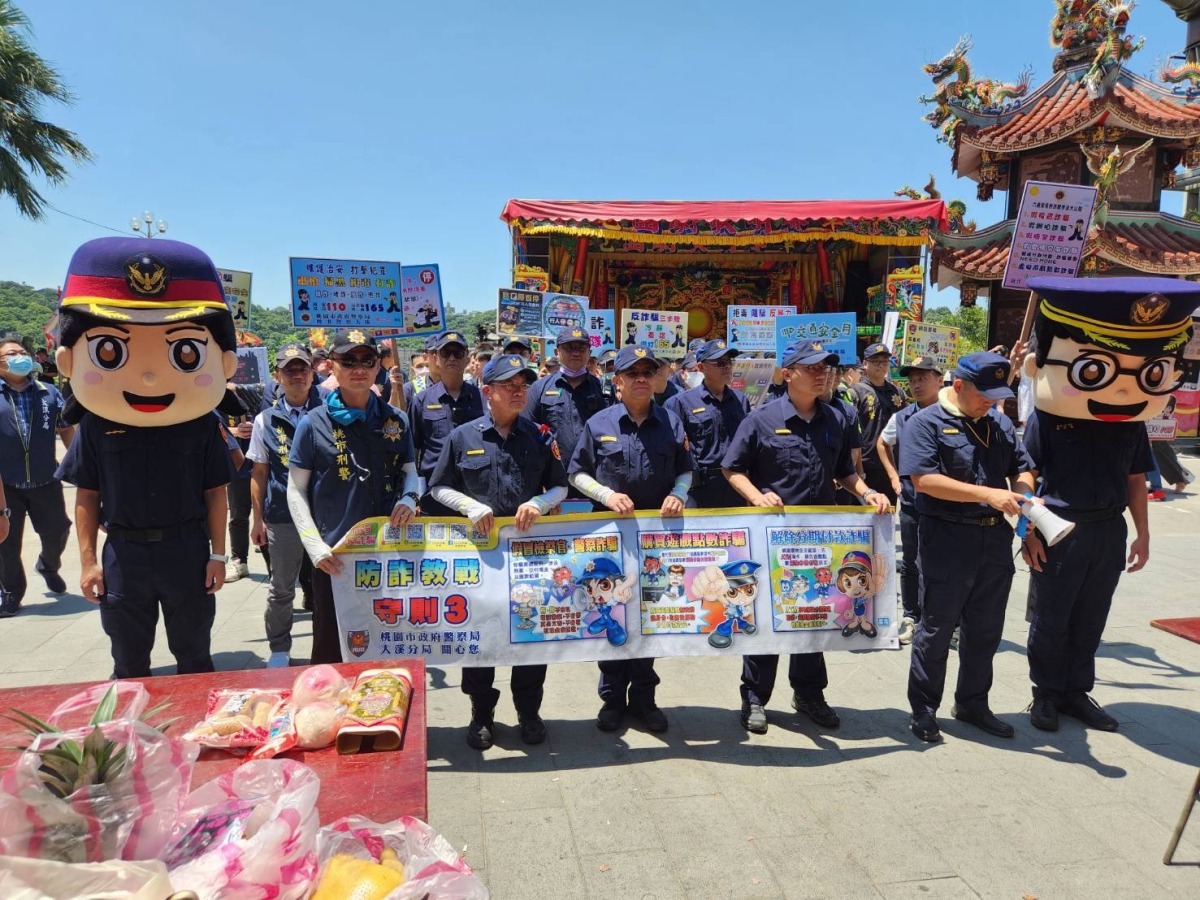 桃園市大溪區著名廟宇普濟堂慶祝關聖帝君誕辰節日,今(9)日與明(10)日兩天普濟堂將有大規模的迎神遶境及宗教民俗技藝活動,大溪分局為確保活動期間秩序,共同維護大溪優質宮廟及陣頭文化,在桃園客運大溪站2樓設立前進指揮所,特別申請保安警察大隊、交通警察大隊及其他各分局總計110名支援警力,投入此次維安勤務,採機動服勤,迅速到場,遏止不法,快速打擊犯罪,勤教完成後由分局長徐坤隆帶隊,沿遶境路線巡視,並到普濟堂參拜,一同祈求遶境平安及慶典維安各項任務圓滿,同時也讓支援警力能更加熟悉地形及現場狀況,遇有緊急情況,能迅速到達。