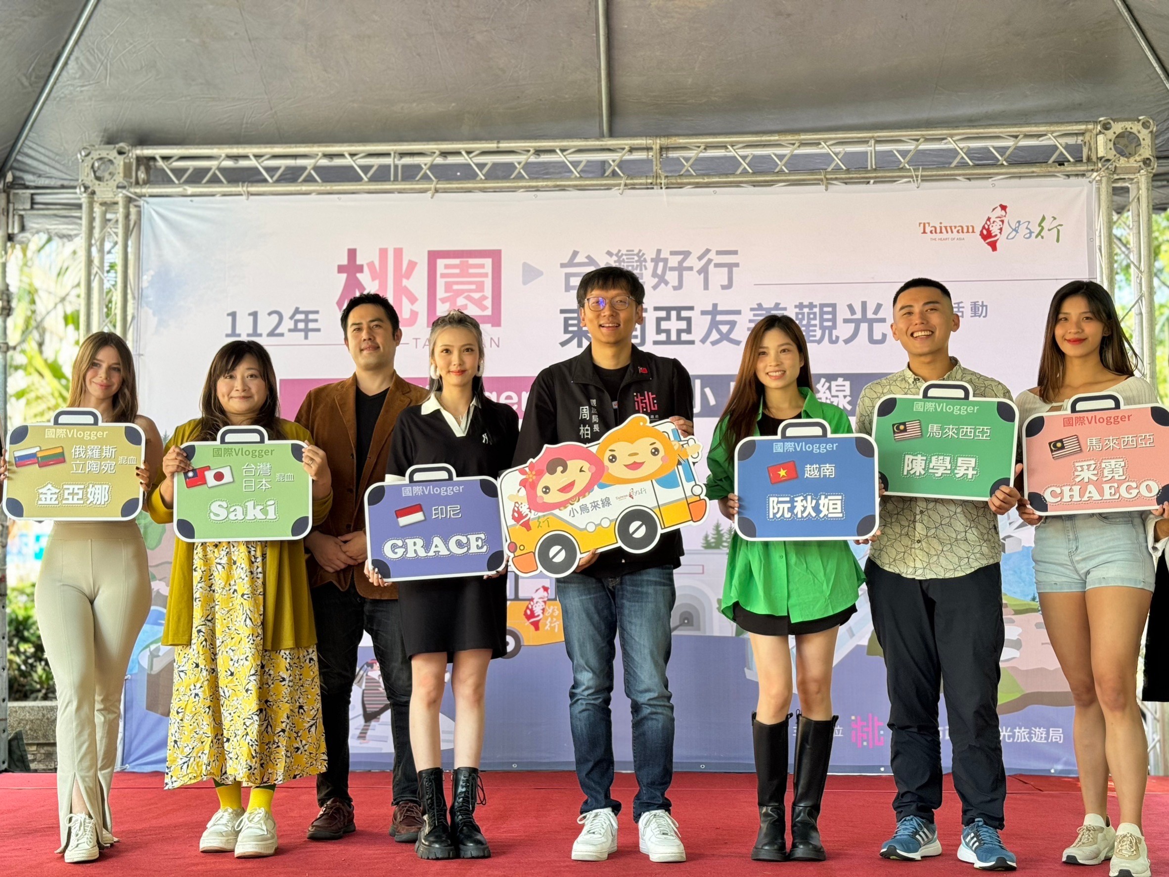 觀旅局長周柏吟提到,這次邀請踩線的Vlogger,包括榮獲國際超模大賽冠軍的印尼籍網紅林詩雅Grace、首度擔任國慶典禮主持人的台灣新住民越南籍網紅阮秋姮、常接受媒體訪問的台日混血家庭親子網紅Saki、俄羅斯立陶宛混血台灣媳婦金亞娜、精通各種語言的馬來西亞網紅陳學昇、代表作獲590萬超高觀看流量的香港網紅GaiSher,其他Vlogger如來自馬來西亞的采霓 CHAEGO、俄羅斯的烏莉雅,透過經營IG獲得眾多粉絲、馬來西亞籍的嚴樂斌在吉隆坡推展台灣觀光、越南小柒Jully從事配音翻譯具有固定的支持群,期望藉由這些知名Vlogger的視角,把桃園介紹給自己的粉絲,更進一步將桃園之美推廣至全世界。