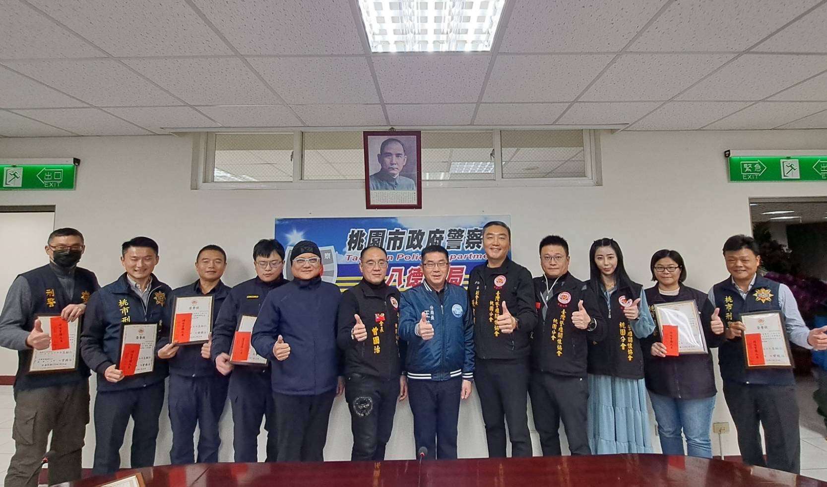 八德分局近期破獲職業賭場、槍枝、非法組織集團、詐欺集團案等,守護社會治安有功,曾國治特別在會中感謝警察同仁對治安工作上犧牲奉獻及績效卓越表現,表揚與關懷之意。