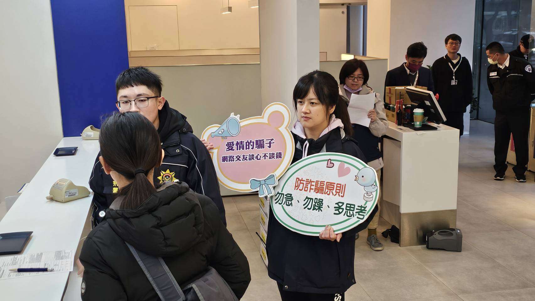農曆春節即將到來,民眾將會在年前至銀行辦理換新鈔,針對節日的治安維護,桃園警察分局與轄內凱基銀行藝文分行一同辦理防搶演練,希望能強化行員的危機應變能力,守護民眾的財產安全。警方也在這次的演練中一併舉辦識詐宣導,員警接到銀行通報,有民眾疑似遭到常見的「假交友」詐騙手法,正要進行匯款動作,立即趕抵現場進行識詐、阻詐勸導。