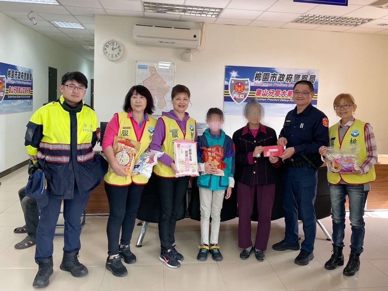 昨(10)日龜山分局大華派出所探訪轄內低收入戶,因健康因素無法工作的陳男,一家五口僅靠妻子打零工維生,以及外籍單親媽媽黎女,也只靠自己在工廠工作的薪水扶養家中兩名幼兒,所長得知後便偕同警友站及婦女志工一起慰問他們;大埔派出所所長得知轄內一位何姓男子,因病無法工作且須持續復健,仰賴家中年邁母親撿回收維持生計,便主動提供民生物資,希望能幫助弱勢家庭度過年關。