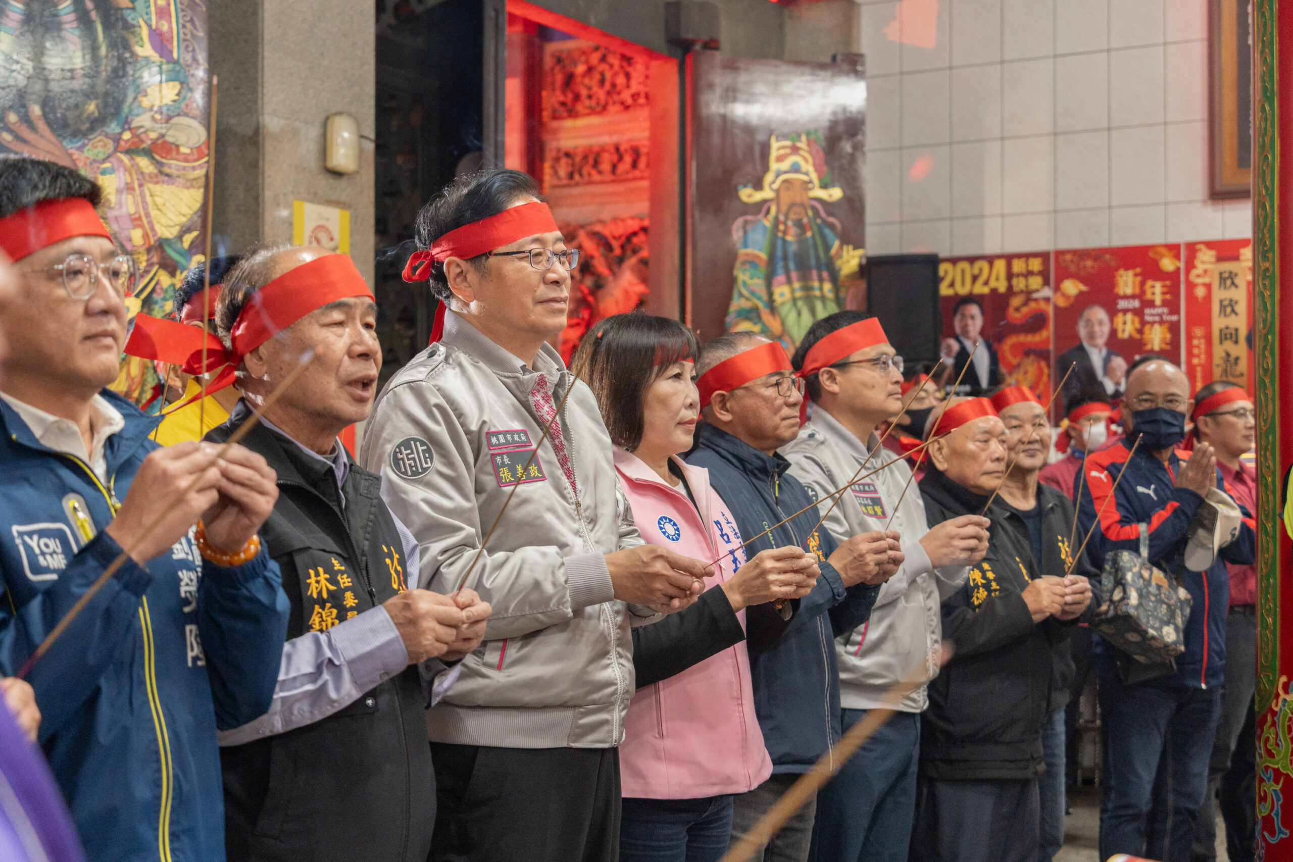 桃園市長張善政24日前往出席繞境活動,接財神繞境隊伍聚集於龍潭龍元宮廟前,銅鑼聲響、起馬炮鳴放,所有傳統陣頭及神將,在市長的帶領下,與廟方共同扶鸞步行出發繞境祈福。張善政祈求新的一年商人生意興隆、農作豐收、國泰民安。