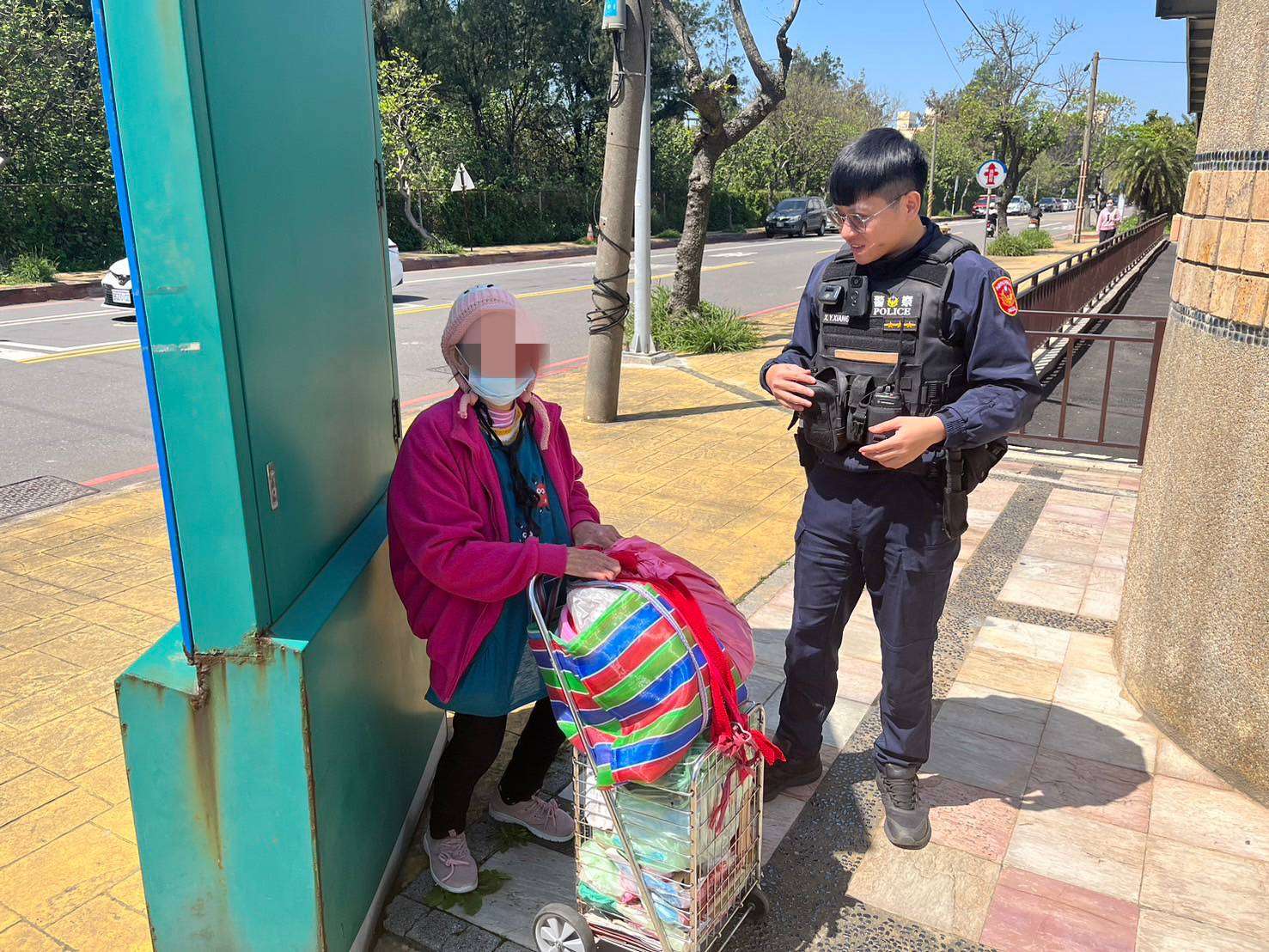 草漯派出所表示,昨日下午接獲民眾報案,在工業五路與成功路二段路口,有一名老婦帶著大包小包在街頭徘徊、神情疲憊,疑似迷路請警方協助。員警獲報到場關心,但老婦無法說出自己的年籍資料,僅說她是出門買菜,要搭車回家卻下錯站不知該如何是好。員警在關懷老婦的同時,越看越覺得她相當眼熟,隨即打開手機通訊軟體群組裡的「常走失人口相簿」進行查詢,發現她疑似就是之前曾走失的楊姓老婦,於是立即與其兒子聯繫確認身分。