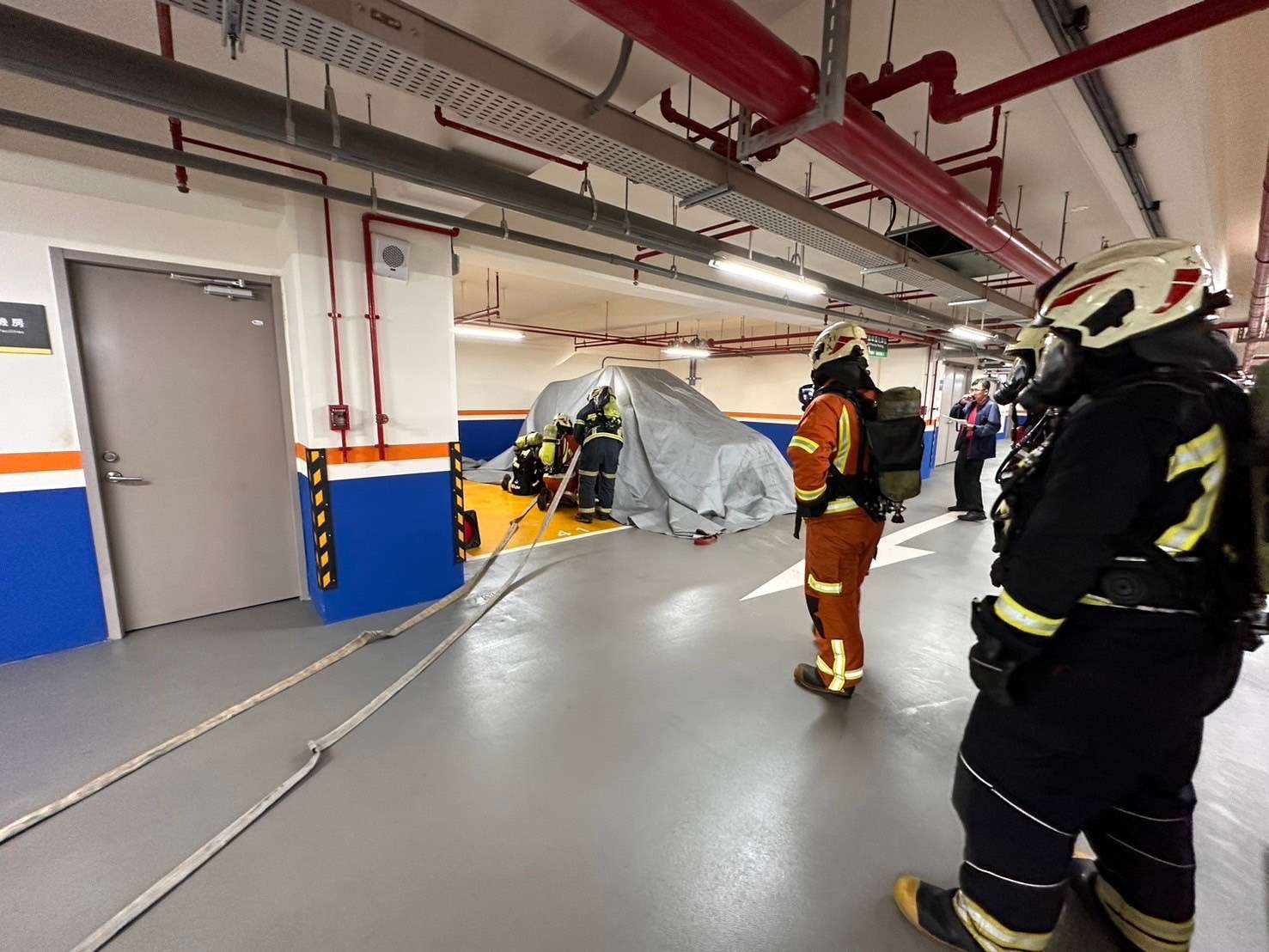 考慮到地下室火警常因通風不良而增加救援風險,此次演練特別納入消防特種車輛—排煙車,以強化火場的排煙作業。此外,為確保高樓及地下室火警作業中與外部指揮人員的通訊暢通,本次演練還進行了無線電中繼站的架設,避免因資訊不對等而錯失即時應變的機會。