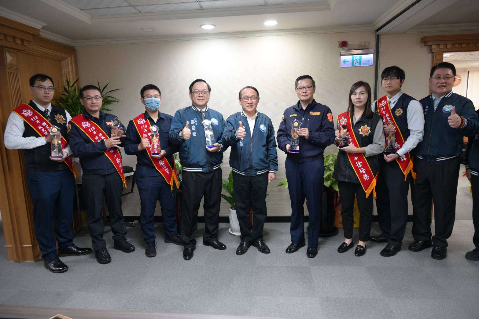 國家警光獎向來有「警界奧斯卡獎」美稱,代表警界最高榮耀及職涯成就,桃園市警察局參加內政部警政署「113年國家警光獎」績優警察人員遴選,在全國團體組87件及個人組98件優良事蹟中脫穎而出,榮獲團體組2座獎項,個人組5座獎項,再創歷年來最佳成績。桃警團隊本(12)月4日由局長吳坤旭率同獲獎人員,赴內政部警政署參加頒獎典禮接受表揚,並於今(11)日在桃園市政府市政會議中,將獎座呈獻給市長張善政,與全體市民共享成果及榮耀。
