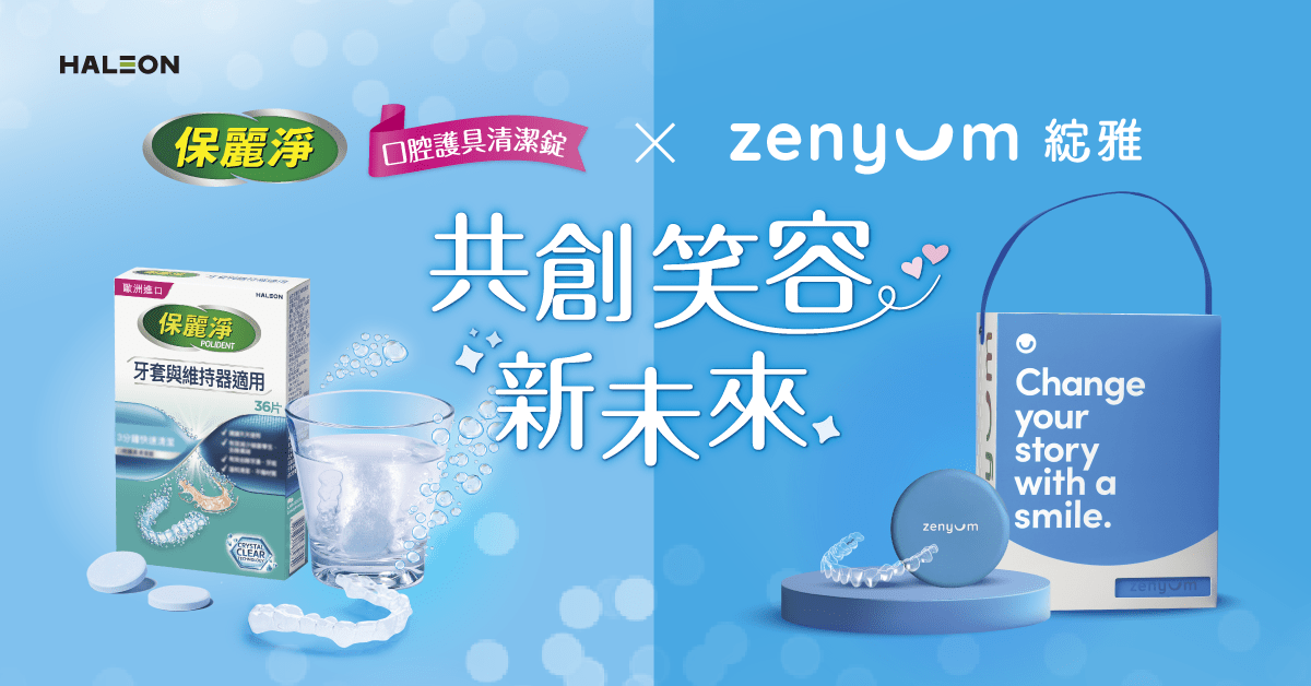 牙口健康與牙齒整潔,是健康生活和自信笑容的關鍵。隱形牙套品牌Zenyum綻雅近期攜手全球消費保健龍頭-英商赫力昂轄下保麗淨,進行異業合作,將旗下產品融合綻雅隱形牙套,重新「錠」義及升級廣大品牌用戶的隱形牙套旅程;這次合作讓隱形牙套及維持器用戶的口腔護理更加全面,更早引領用戶維護口腔健康,展現雙方品牌追求卓越的創新能力,以及在願景方面的高度契合。