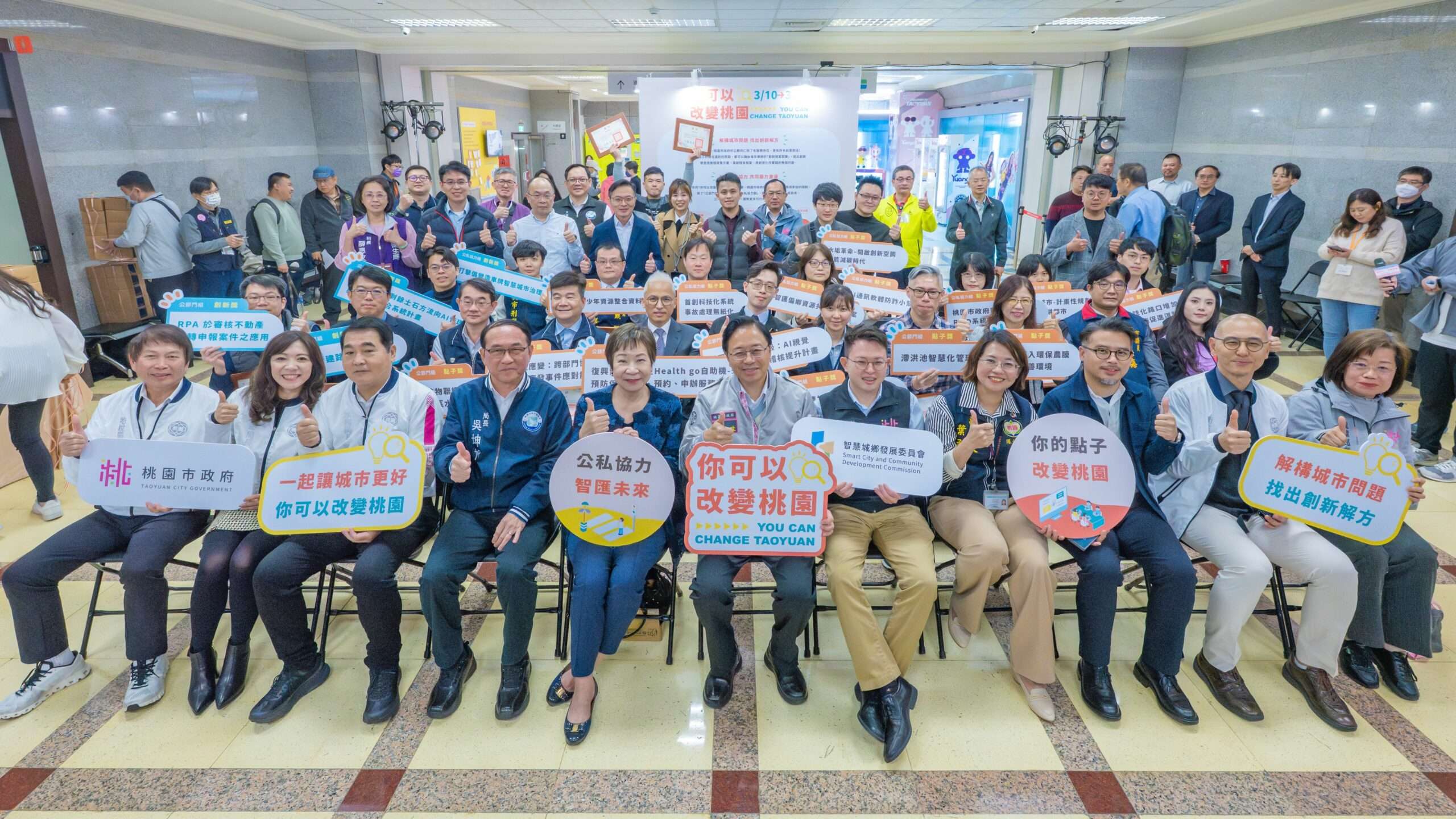 在「公私協力組」方面,智發會進一步說明,復興區衛生所與企業合作推動「虛擬醫院」,強化偏鄉醫療可及性;建管處提出「營建剩餘土石方流向AI管理系統」,有效解決廢棄土處理問題;警察局則運用AI巡防技術強化車牌偵查,提升城市治理效率,這些創新方案皆獲創新獎肯定。為讓市民深入瞭解這些創新提案,即日起至3月21日,市府一樓大廳將展出20件得獎作品,並推出「逛展集章換咖啡」活動,邀請市民體驗智慧治理的成果,為桃園未來發展提供更多創新想法。